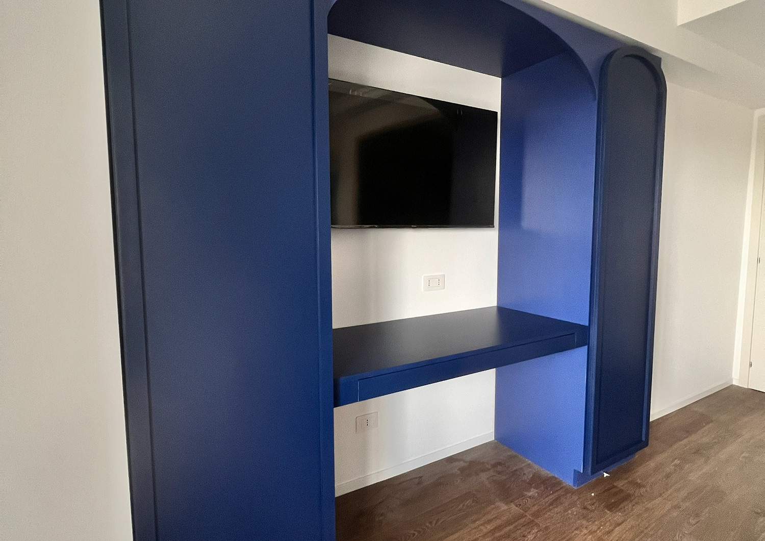 Realizziamo mobili in massello, nobilitato o verniciato con bordi protetti e ferramenta professionale per aperture ripetute e carichi frequenti.